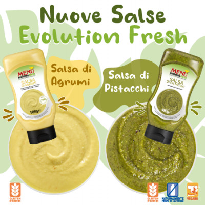 Zitrussauce und Pistaziensauce: zwei neue frische Saucen im praktischen Top-Down-Spender, hergestellt mit der speziellen...