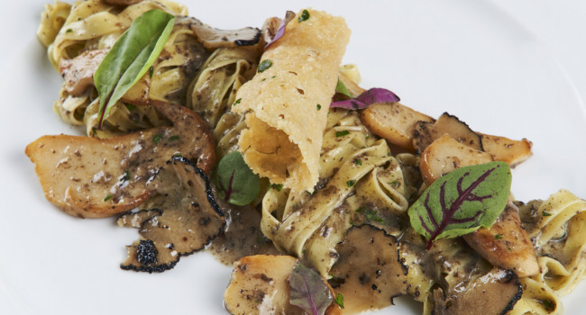 Creme aus frischen Champignons (Agaricus bisporus) und edlem Sommer-Trüffel (Tuber aestivum). Ideal als Begleitung zu Fleischgerichten.