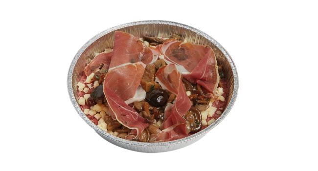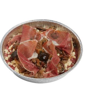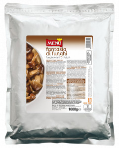 Gemischte Wald- und Zuchtpilze: Gemeine Stockschwämmchen, Riesen- Träuschlinge, Steinpilze, Austernpilze, Schwarzstreifige Scheidlinge und Echte Pfifferlinge, mit Öl und Kräutern zubereitet. Ausgezeichnete Mischung gedünsteter Pilze, die sich ideal zum Belegen von Pizzen, aber auch für Pasta und Hauptspeisen oder zu Polenta eignet.