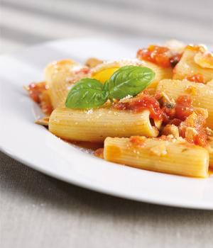 Pastasauce aus frischen Tomaten, mit nativem Olivenöl extra, Ricotta-Frischkäse und Mandeln.