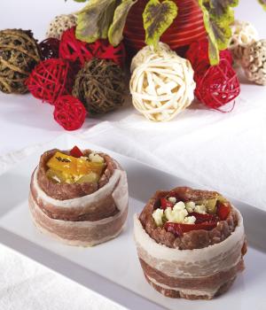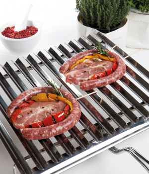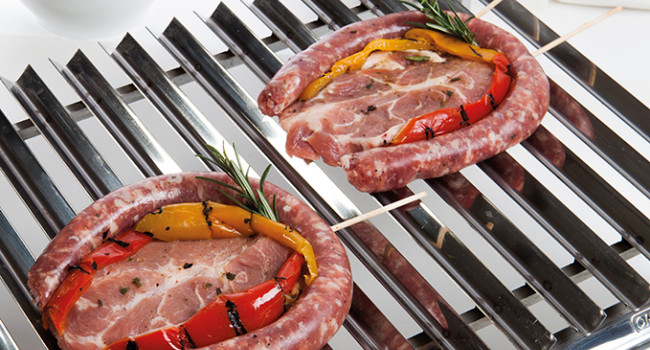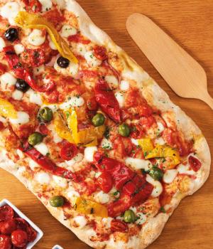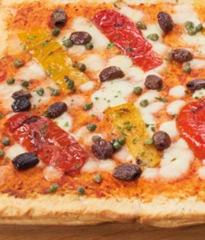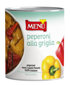 Rote und gelbe Paprikaschoten, frisch verarbeitet, gegrillt und mit Olivenöl und Kräutern verfeinert. Ausgezeichnet für die Füllung von Hamburgern, für Fleischgerichte und als Beilage.