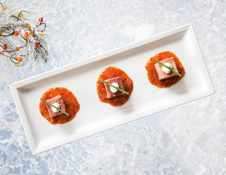 BOLLITO DI LINGUA SU SALSA DI PEPERONI E ARANCIA