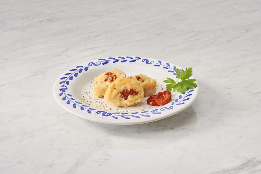 200 g gemischten Fisch mixen, die Fiokki, Salz und das Zitrusfrüchtepesto dazugeben. Die Kabeljaufilets, die nur auf einer Seite in die Semmelbrösel gedrückt wurden, eng nebeneinander auf ein Blatt Lebensmittelfolie (zum Sous-Vide-Garen) oder Backpapier (zum herkömmlichen Garen) legen, ohne Platz dazwischen zu lassen. Die vorbereitete Masse darüberstreichen und die Dorati-Tomaten in die Mitte setzen. Die Filets mithilfe der Folie oder des Backpapiers einrollen und sorgfältig verschließen.