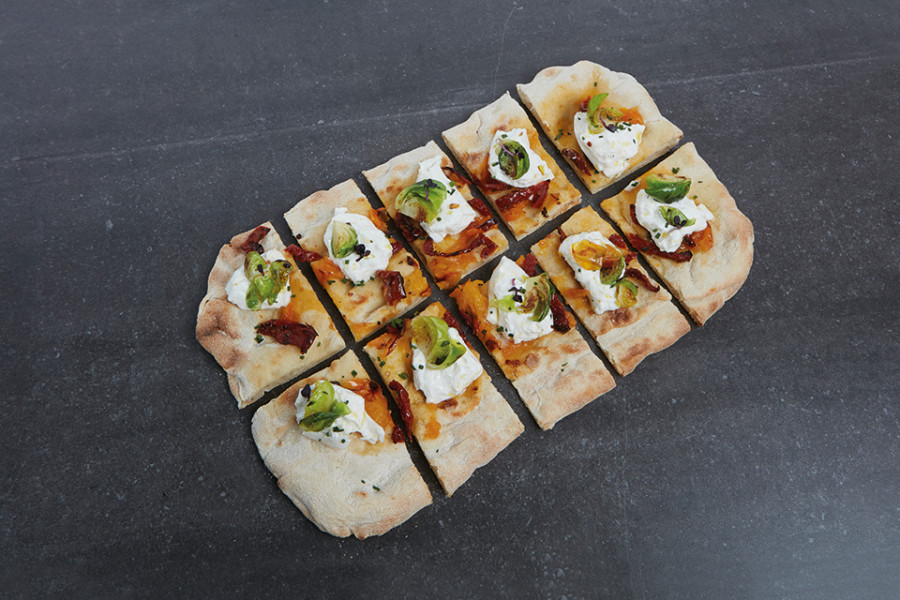 P.A.L.A. con Tuttosole, burrata e cavoletti di Bruxelles croccanti