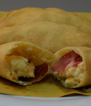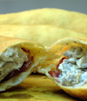 PANZEROTTO RIPIENO RICOTTA, CAPOCOLLO DI MARTINA FRANCA E GRANSALSA DI CARCIOFI
