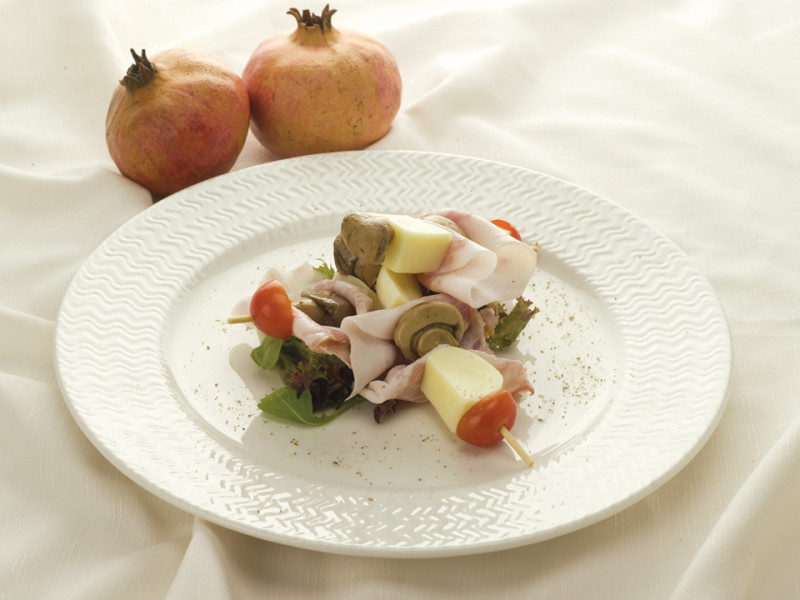 guanciale e prataiolo, il tutto due o tre volte. Impiattare guarnendo con rucola fresca.