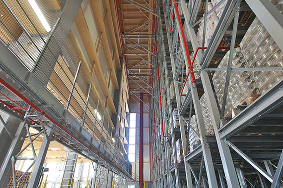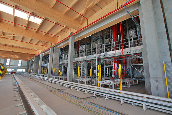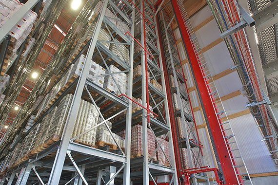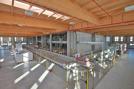 All the automation is highly innovative, quick and efficient, but at the same time safe and earthquake proof. Cooling of the first two levels (with a total of 6.000 pallets) has a controlled temperature (18/20°C). Management is completely computerized and carried out by one person only.