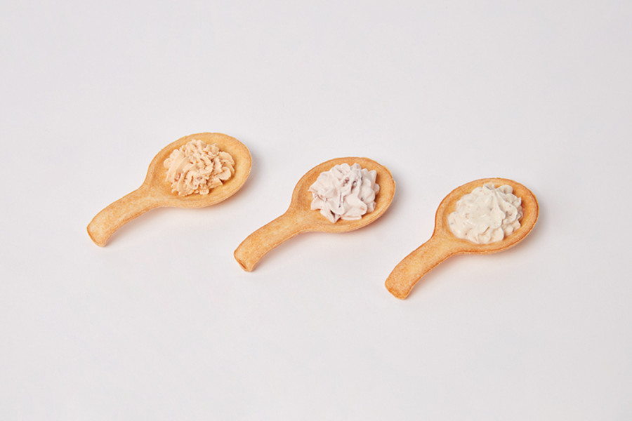 Slightly salty baked product in the shape of a spoon. Ready to fill and very useful for tasting samples.