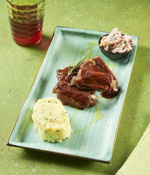 Pork ribs seasoned with herbs and spices, roasted and browned in the oven. Delicious and full of flavour. Shelf life is 12 months from the date of production at room temperature, keep in a cool dry place.