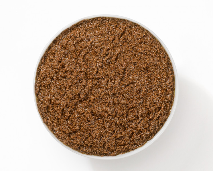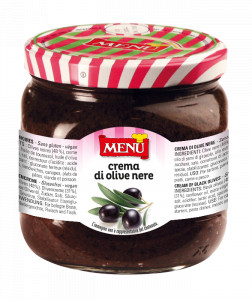 Delicious black olives, finely chopped and mixed with extra-virgin olive oil. Excellent to spread on pizza, bruschetta and sandwiches. It can be paired with meat dishes and cheeses.