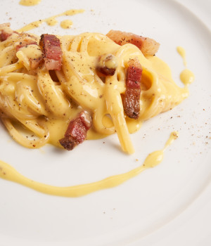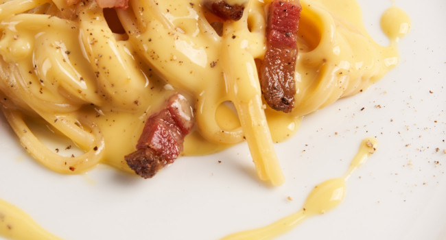 Menù’s Grancrema alla Carbonara is prepared using egg yolks, black pepper and Pecorino Romano PDO, offering a creamy and ready-to-use solution though our special aseptic technology. Perfect for creamy first courses, this spread can be enriched with jowl bacon for a traditional Carbonara, with fish for a seafood version, with vegetables for a vegetarian variant, or with mushrooms for a mountain version. Its unique creaminess makes it versatile for other uses such as a topping for contemporary pizzas and bruschetta or as a filling for sandwiches.