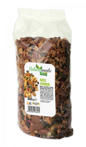A colourful blend of legume flakes, pumpkin seeds, almonds, raisins and apple.