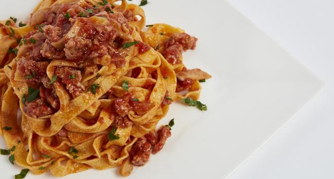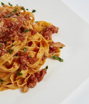 Sauce made with selected pork meat, with tomato fresh vegetables, bacon and aromatic herbs. Recommended for pasta, gnocchi, baked pasta or on polenta.
