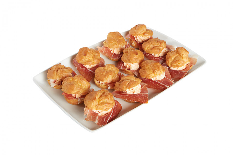 In una ciotola mescolare il formaggio morbido con la Salsa di pomodori secchi. Tagliare l’estremità dei bignè e posizionare all’interno una fetta di prosciutto crudo. Farcire il bignè con la farcia di Pomodori secchi e chiudere con l’estremità appena tagliata.