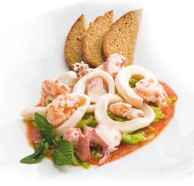 Drain the Èmaremix. Pour the Pomodorina sauce into a soup bowl, add the julienned vegetables and the Èmaremix and season to taste with oil and herbs.