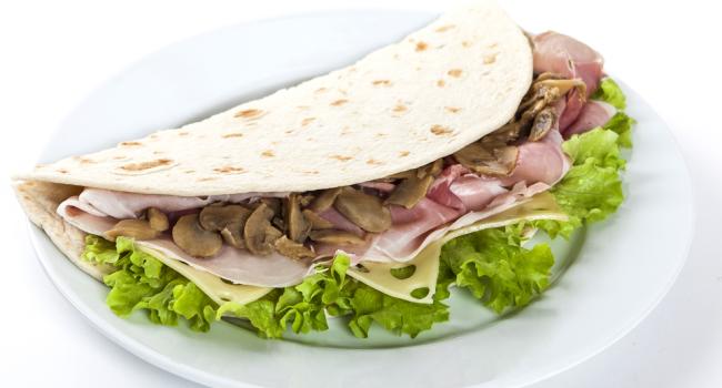 Piadina with prosciutto and porcini