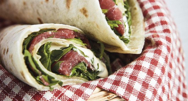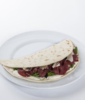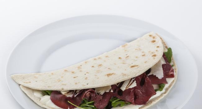 Piadina with smoked veal topside and Parmigiano Reggiano spread