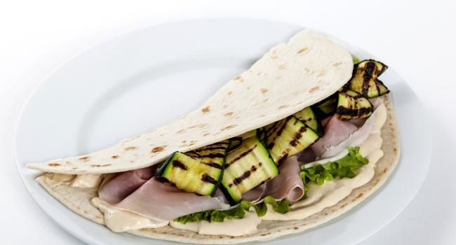 Piadina with ham, Grancrema Gorgonzola and courgettes