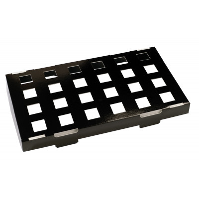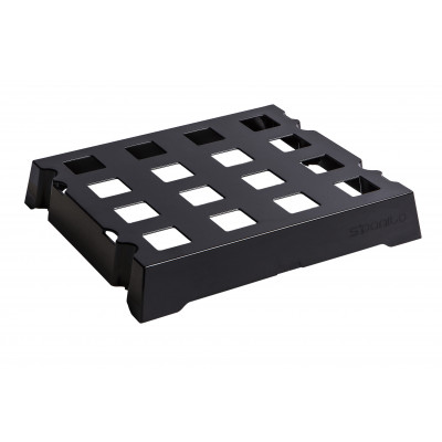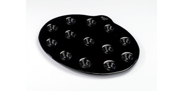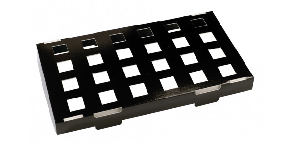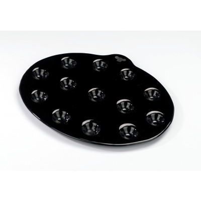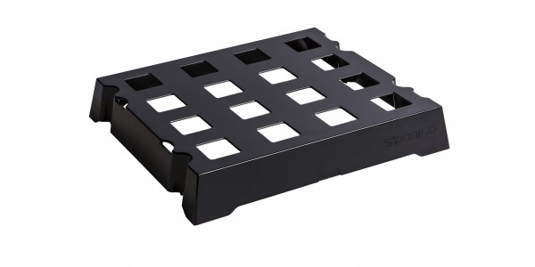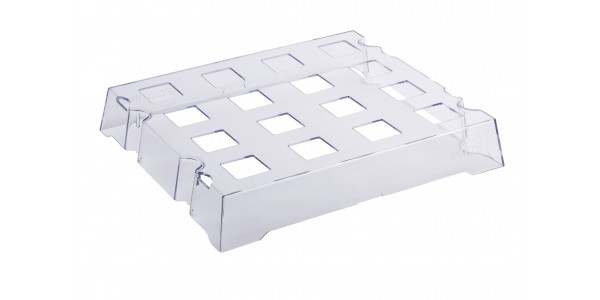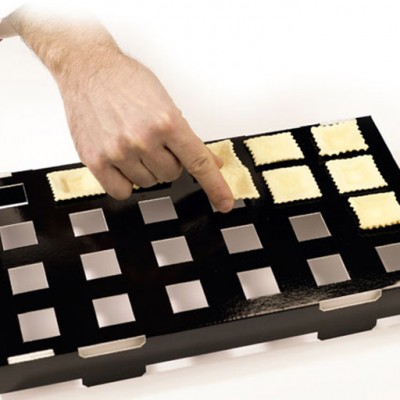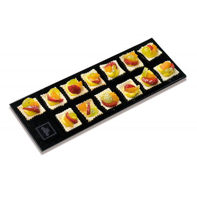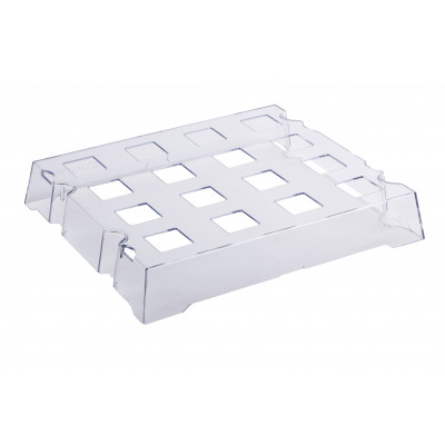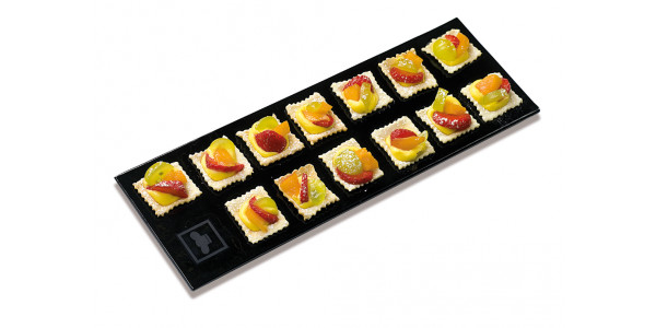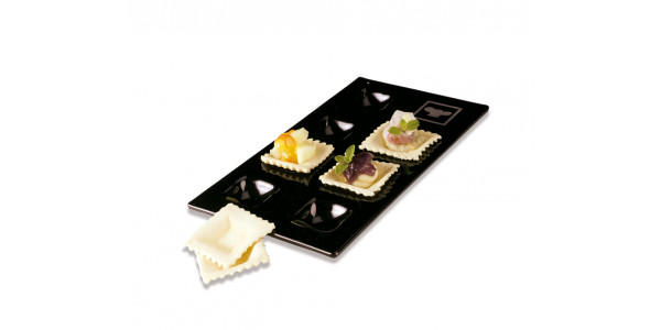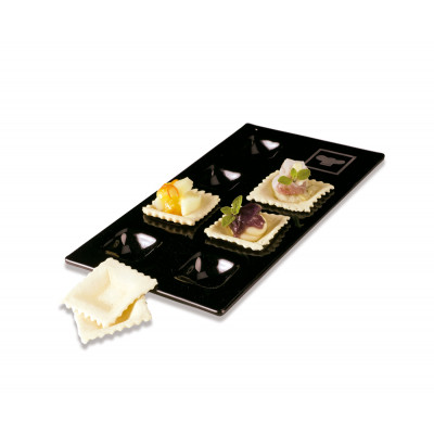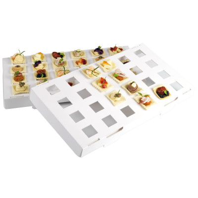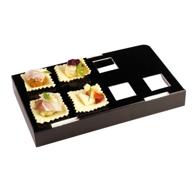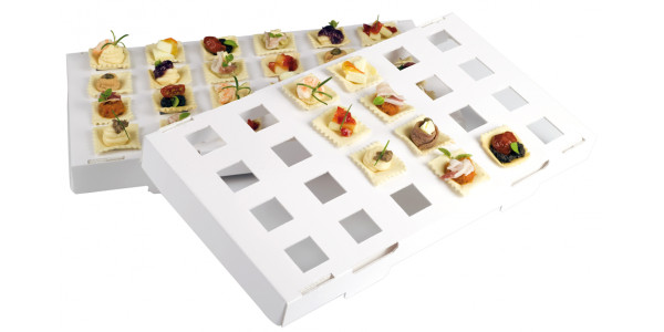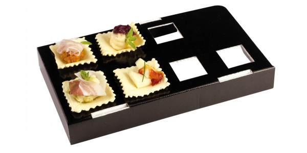 - elegant and functional with the various offers of different trays, made of plasticated cardboard, elegant glass or exclusively ABS (thermoplastic polymer) in three colours: white, black and transparent; practical, stackable, sturdy, washable and re-utilisable.