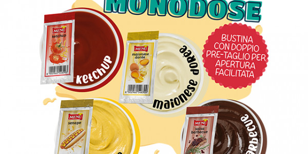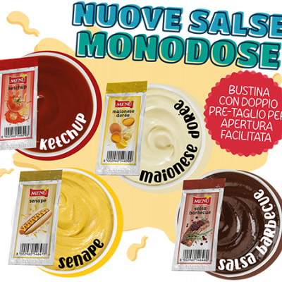 Salsas monodosis con bolsita con doble muesca de apertura para facilitar la apertura....