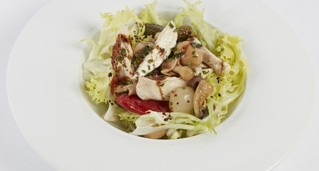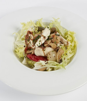 Surtido de setas (champiñones comunes, nameko, setas de la paja de arroz) y hortalizas (cebollitas, pepinillos, alcachofas cortadas por la mitad, pimientos en cubitos) con aceitunas verdes y negras. Todo ello con aceite y vinagre balsámico de Módena I.G.P. Indicado como entrante y para condimentar ensaladas y platos de pasta fría.