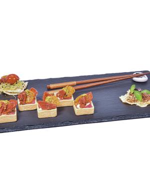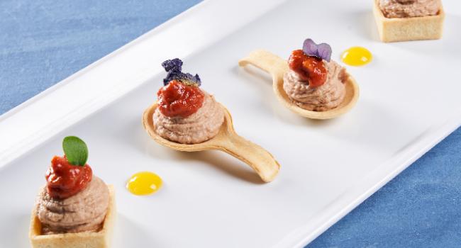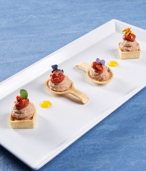 Minitartaleta de pastaflora neutra, de forma cuadrada y elegante. Ideal para rellenar con cremas de verduras y quesos o con mousses saladas y dulces.