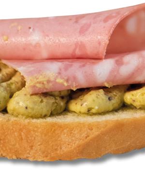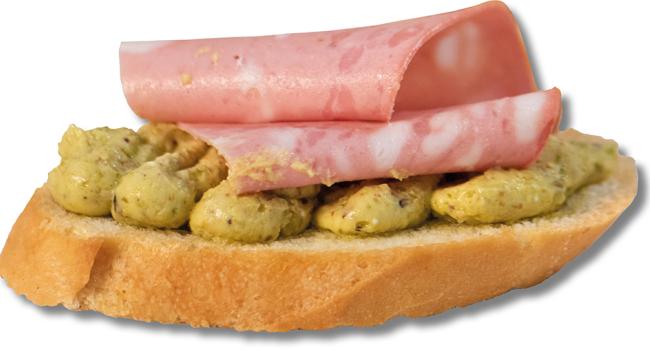 Mortadela con jabalí con pistachos envasada al vacío. Periodo de conservación: 120 días a partir de la fecha de producción. Modo de conservación: 0-4°C