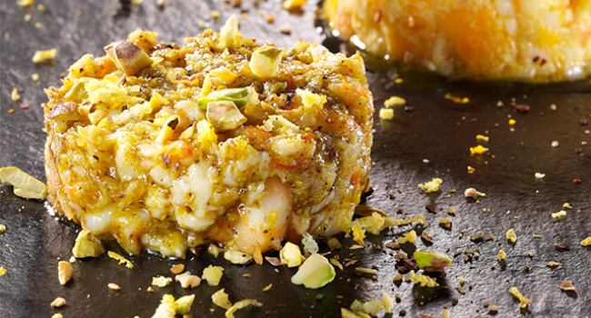 Pesto sabroso y aromático, preparado con pulpa y cáscara de naranja, cáscara de limón, almendras enteras tostadas, queso Grana Padano D.O.P. y emulsionado con aceite.