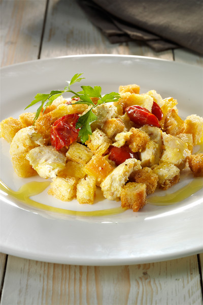 aggiungere il pane tostato e chiudere il sacchetto legandolo