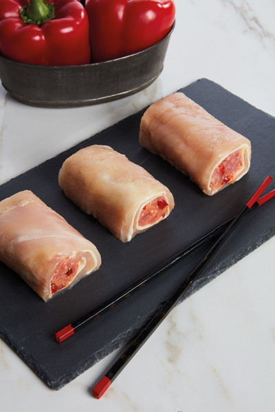 Colocar los fi letes de pollo muy juntos sobre una lámina de papel de