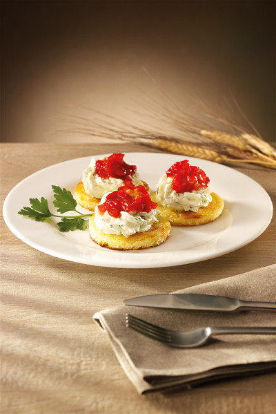 in una sac-à-poche e farcire i crostoni dorati. Glassare con