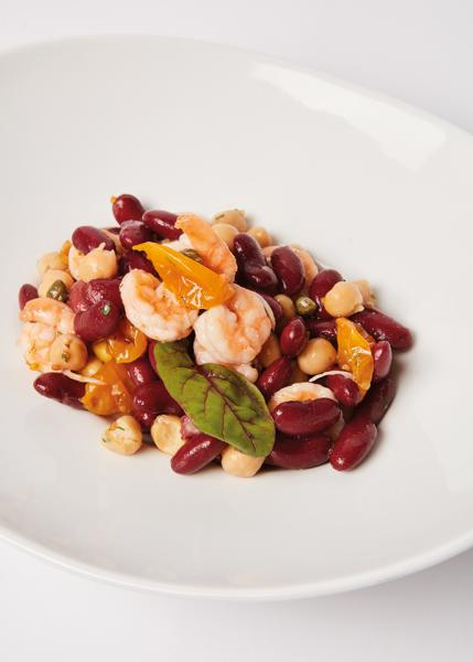 Escurrir todos los ingredientes y ponerlos en un cuenco. Añadir una pizca de perejil picado y un chorrito de aceite y mezclar todos los ingredientes. Emplatar y decorar con una hoja de espinaca.