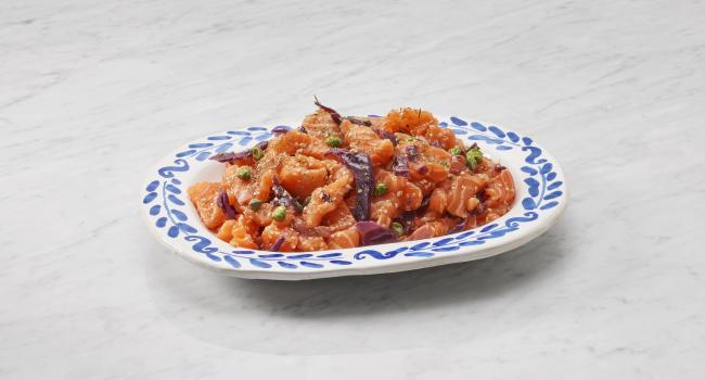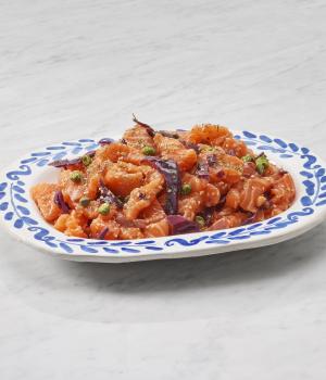 Straccetti di salmone con cavolo viola Straccetti di salmone con cavolo viola