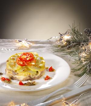 Lasagnetta di patate con alici, finocchietto e pecorino Lasagnetta di patate con alici, finocchietto e pecorino