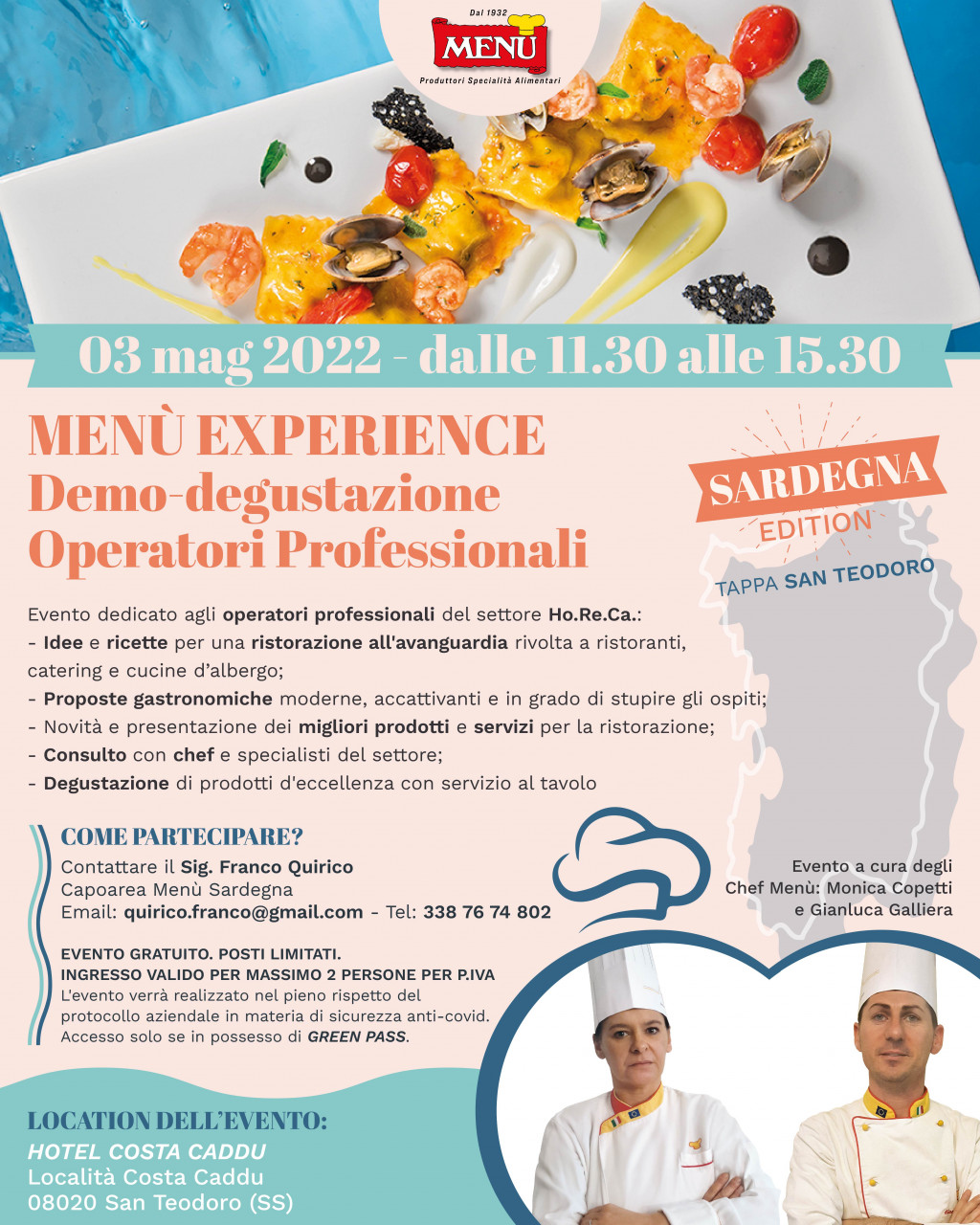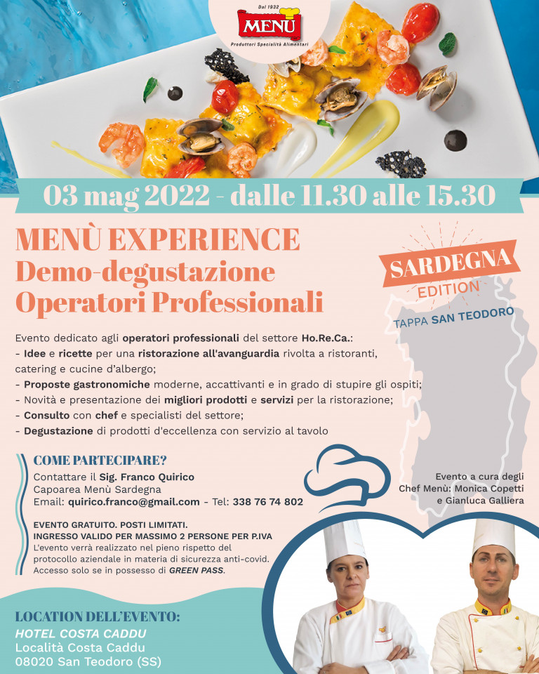 MENÙ EXPERIENCE Demo-degustazione Operatori Professionali - Sardegna Edition - Tappa San Teodoro