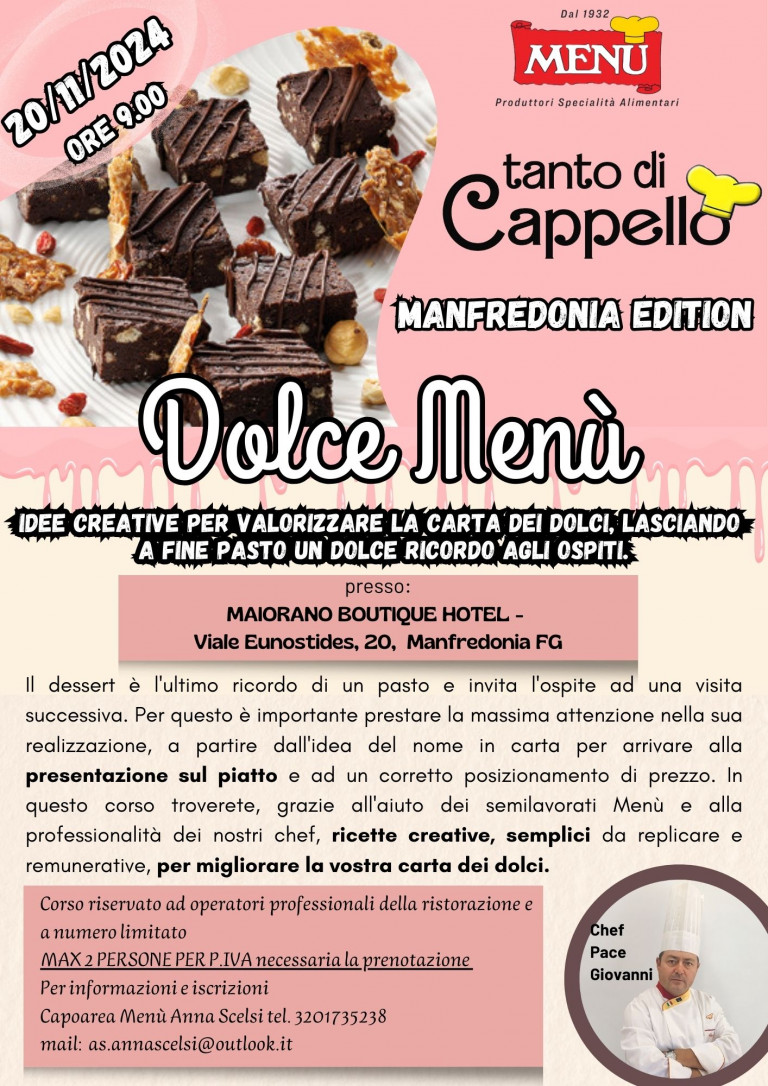 Evento a cura Giovanni Pace, Chef Menù