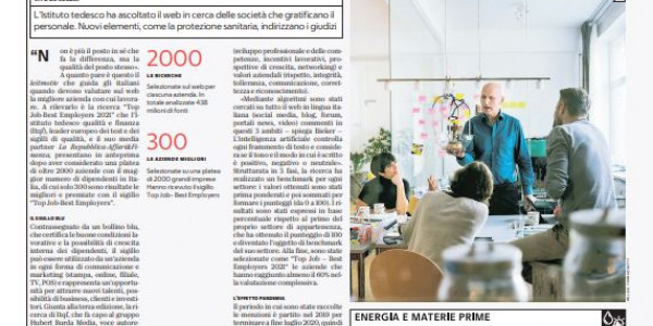 La Repubblica Affari&Finanza e l’Istituto tedesco qualità ITQF hanno pubblicato lunedì 5 ottobre la ricerca sui TOP JOB ...