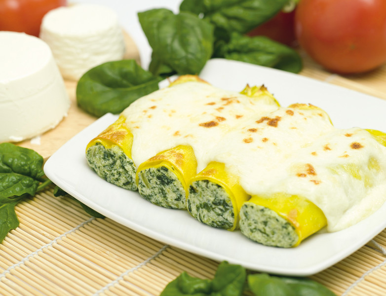 Recette traditionnelle italienne, légère mais savoureuse. Le plat se compose de cannellonis réalisés avec une pâte à l'œuf et farcis avec de la ricotta et des épinards à la sauce béchamel.