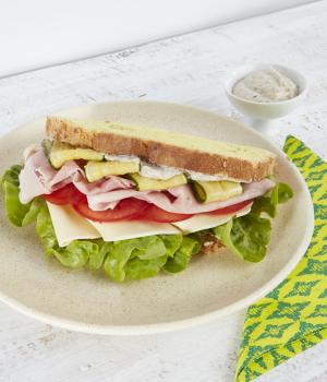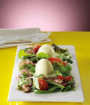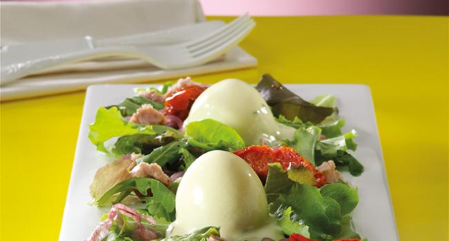 Mayonnaise gastronomique de couleur claire, préparée avec huile de tournesol, jaune d'œuf, jus de citron, vinaigre de vin et sel. La composition, à faible teneur en calories, résiste bien à l'oxydation et est donc idéale pour les bars et les sandwicheries.
