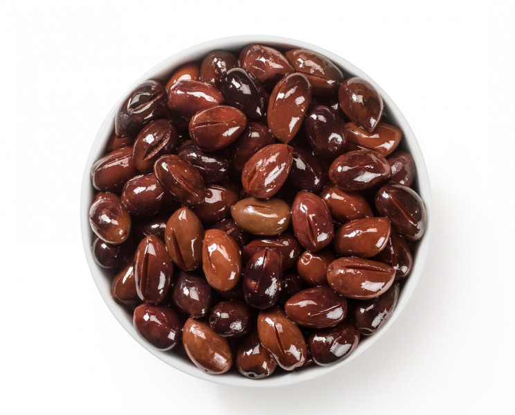 Olives de Kalamata, typiquement entaillées, marinées dans de l'eau, du vinaigre et de l'huile d'olive extra vierge. Excellentes pour les hors-d'œuvre, les apéritifs et les salades.
