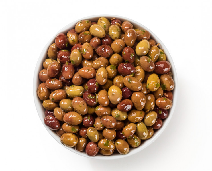 Olives de Taggia marinées dans de l'huile d'olive extra vierge et assaisonnées d'herbes aromatiques. Excellentes avec le poisson cuit au four et les viandes blanches en général.