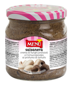 Crème de champignons de couche (Agaricus bisporus) et de trompettes de la mort (Craterellus cornucopioides), à la saveur pleine et au parfum marqué de truffe. Idéale pour accompagner les plats de viande.