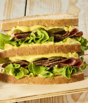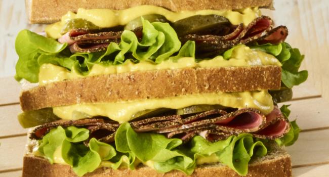 New York sandwich avec Pastrami, Moutarde et Cornichons au vinaigre