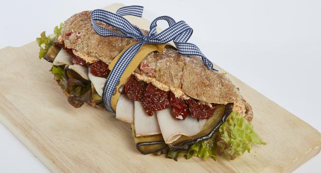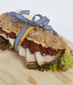 Panino intégral, dinde, omelette, Emmenthal et Gransalsa de poireaux