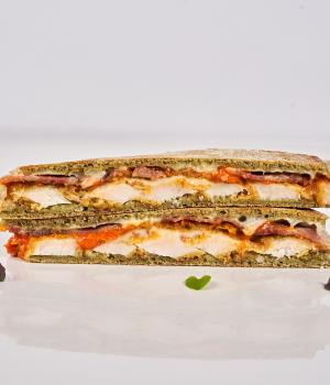 Sandwich jambon cuit, brie et crème de champignons de couche à la truffe