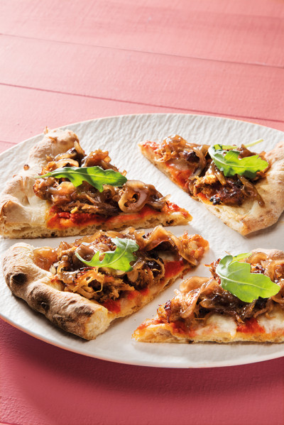 gratinée et les oignons caramélisés. Pour finir, parsemer de roquette fraîche