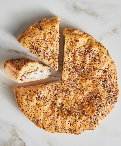 Verser une dose de farce à base de ricotta dans une jatte et ajouter les champignons Èboscomix bien égouttés de leur huile. Mélanger les ingrédients. Garnir un moule avec la pâte feuilletée. Disposer les tranches de speck et la Provola sur le fond. Étaler de façon homogène le mélange à base de champignons. Rabattre les bords vers l'intérieur, badigeonner d'œuf et fermer avec un disque de pâte feuilletée. Dorer au jaune d'œuf et saupoudrer d'un mélange de graines. Cuire au four à