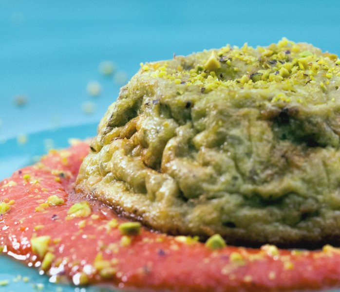 Mescolare le uova con la Gransalsa di cuori di carciofo, il prezzemolo, il Parmigiano e un po' di latte.  Aggiustare di sale e pepe e versare il composto ottenuto in stampini precedentemente imburrati. Cuocere i tortini in forno a 180° per 25 minuti. Stendere la Pomodorina a specchio e sformarvi sopra il tortino e decorare con pistacchi tostati.