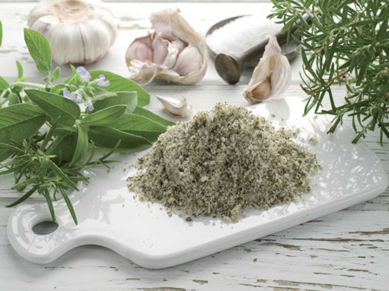Profumoro, una salamoia di antica tradizione, costituita da una parte di sale mescolato a spezie e ad erbe aromatiche italiane appena raccolte.