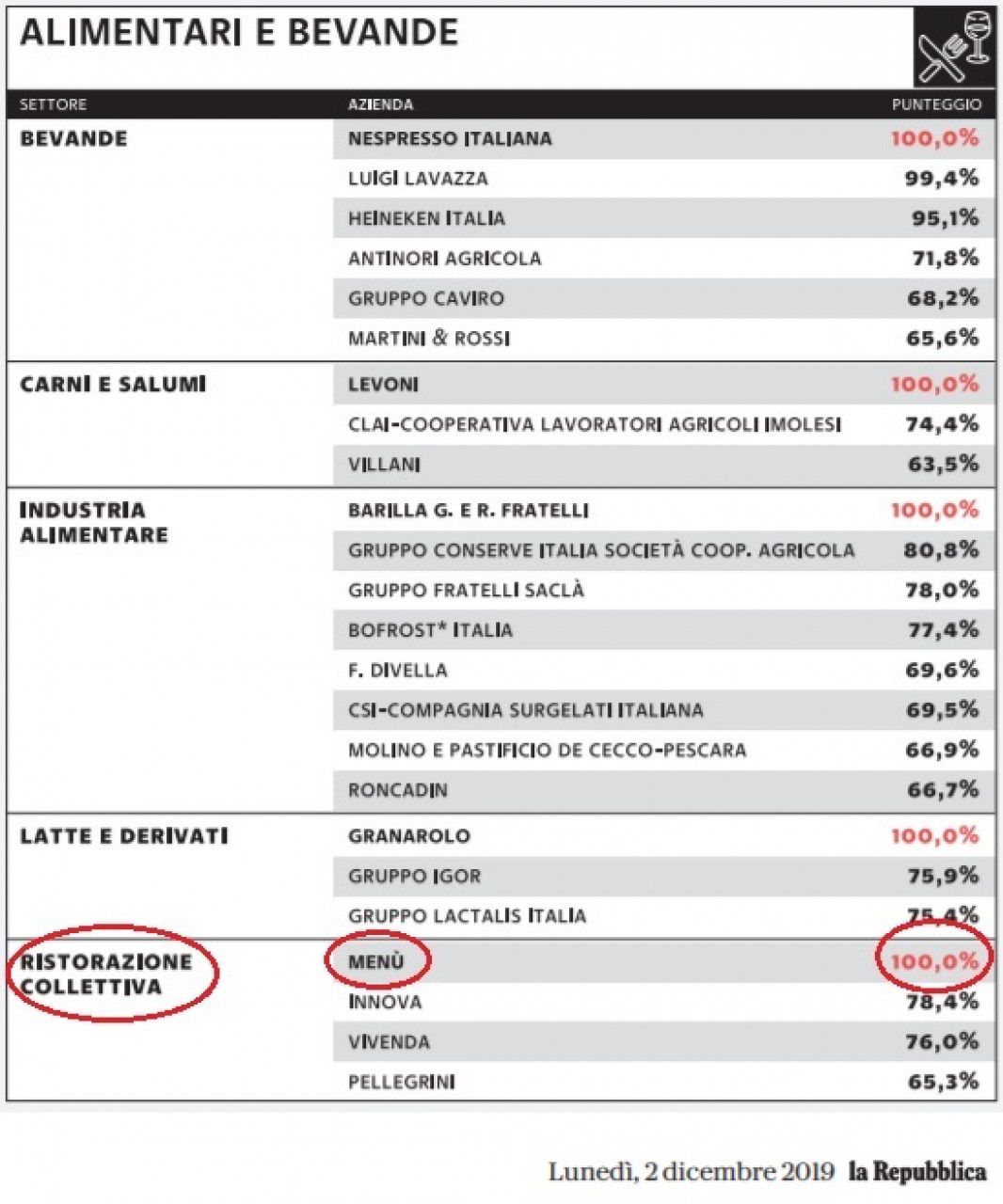 Il 02/12/19 è uscito un articolo su Affari&Finanza di Repubblica, che cita Menù tra le 300 aziende migliori in cui lavorare in Italia. Lo studio è stato curato dall’Istituto Tedesco Qualità e Finanza (ITQF), che ha preso in esame 2000 aziende con il maggior numero di dipendenti in Italia: di queste solo 300 sono state etichettate come “Top Job” ed inserite nella classifica finale.